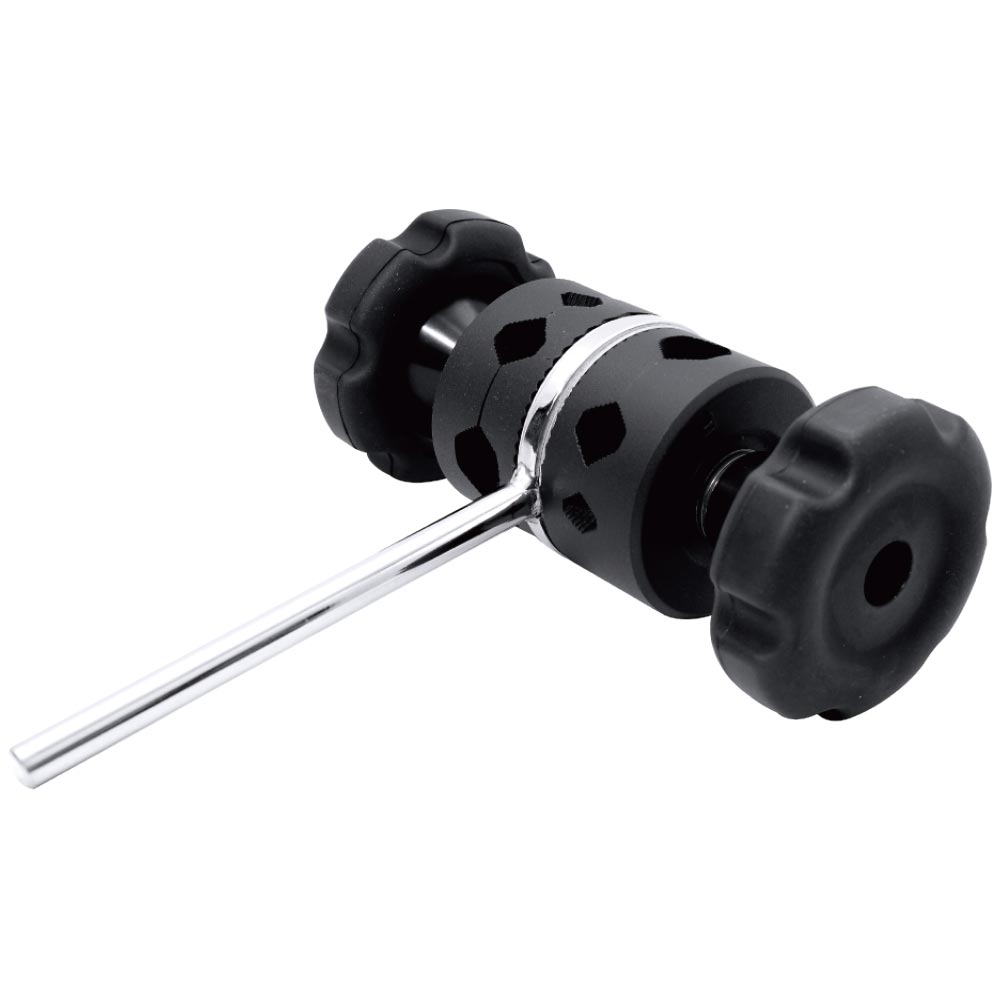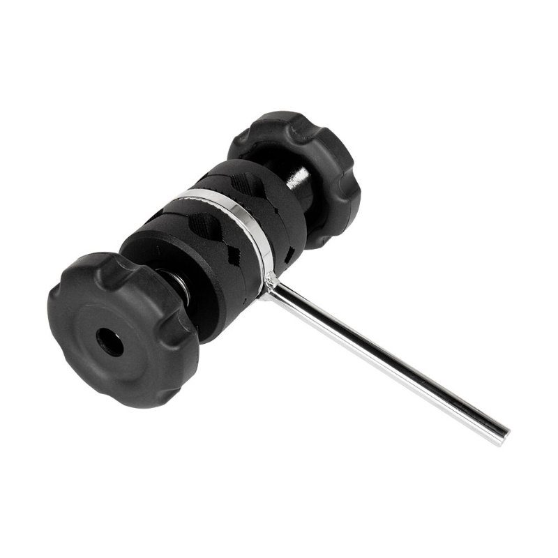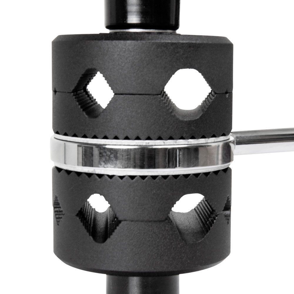 The double gag grip head is two sets of grip head discs mounted on a steel plate with a 10mm diameter rod for 5.3″ / 135mm length. It allows you to easily mount two light control frames into a single grip head.