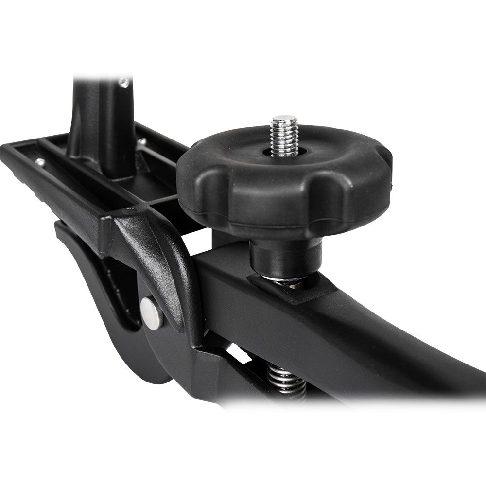 The Kupo Large Gaffer Grip made by sturdy yet lightweight aluminum alloy is a quick mount multi-purpose clamp that will grab on most surfaces flat or round. They’re invent the standard spring clamp by adding strength and versatility. This Large Gaffer Grip is outfitted with a variable tension control knob and comes with a long removable baby 5/8″ (16mm) pin mounted in a female baby 5/8″ (16mm) receiver. The jaws can be adjusted from 0.63″-2.36″ (16-60mm) and have a black finish.