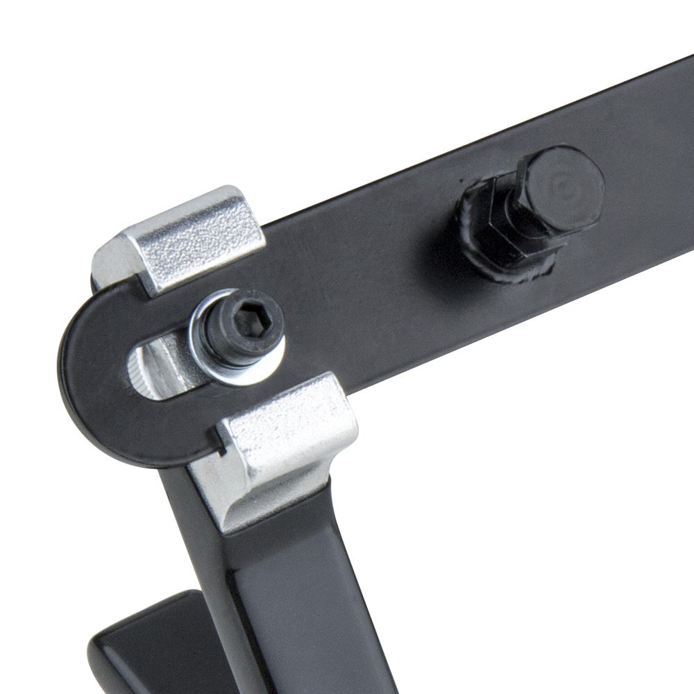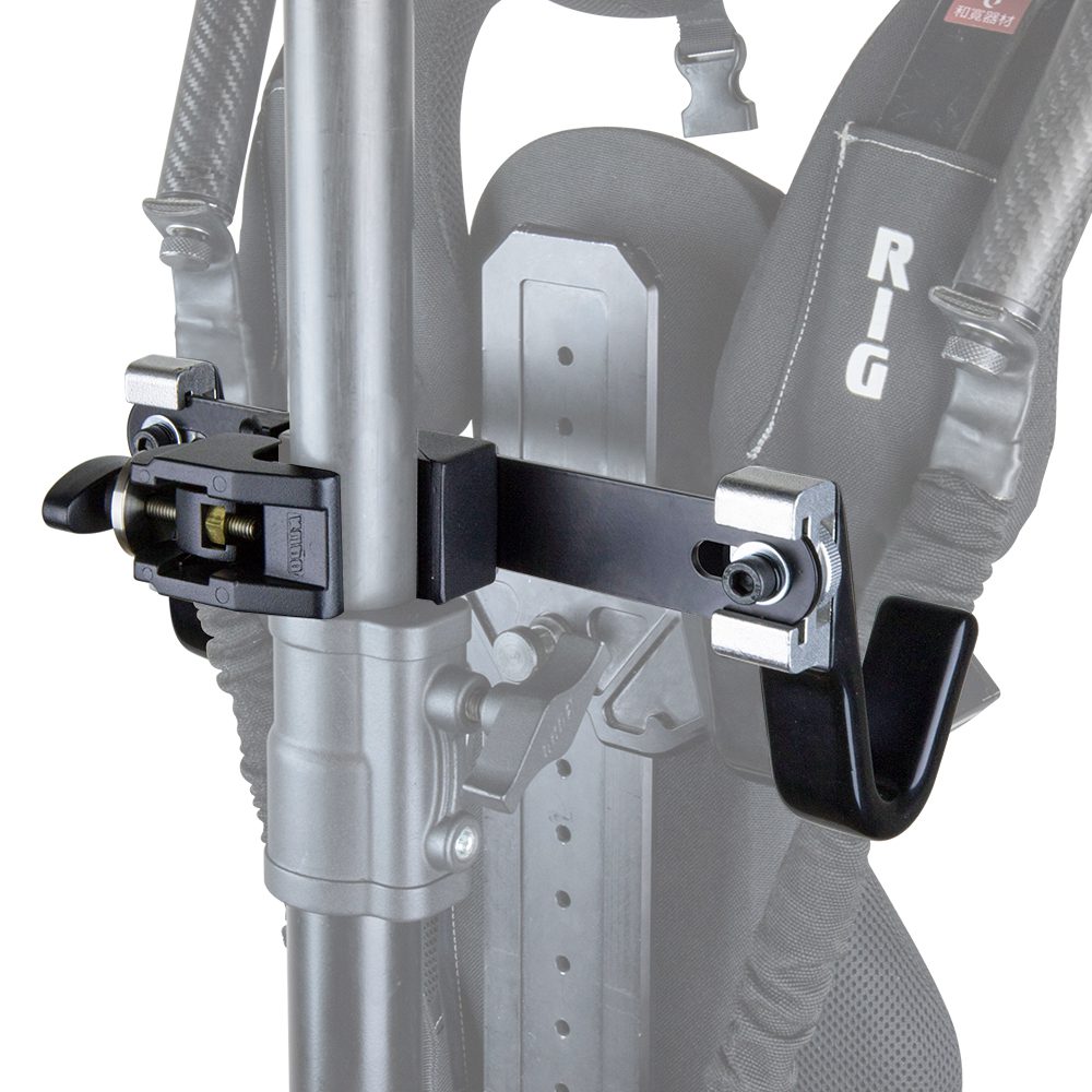 Constructed from solid black painted steel and rubberized aluminum hook, the docking bracket is designed for operator to place the Ready Rig Vest effortless. The 16mm (5/8”) baby stud is weld on the back of steel plate allows to perfect insert into the Super Convi Clamp (KCP-700) and to mount the bracket easily on the stands. Both hooks are able to be moved with the Allen key to adjust the pitch for the MovCam Vest as well.