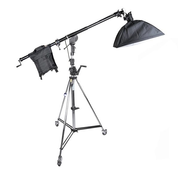 Kupo KCP-636B, Big Boom is featuring a four-way geared control design including pan, tilt, rotation and telescopic extension which allows to have your lights in most difficult positions with ease and comfort. The 1-1/8’’ (28mm) junior receiver and 5/8’’ (16mm) baby receiver on the top of aluminum telescopic column are catered for any lighting fixtures securely mounted with positive locking knobs. Fully folded length is 2.36M (7.8’). With the telescopic column, Big boom can be extended to maximum 3.63M (12’) to meet all demands for most jobs. Saddlebag style counterweight bag with holding straps keeps it securely attached on the boom and increase the boom stability. Ideal to mount on castered wind-up stands to secure an exact position for your light with ease and convenience. All crank handles are foldable and equipped on the boom as delivered which provides the most ready-to-use convenience. The unique mechanical design allows boom to fold down neatly which provides you with an ideal solution for storage and transportation.