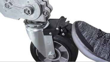 Industry 6” (152mm) braked caster included makes stand moveable in the studio or on location.
