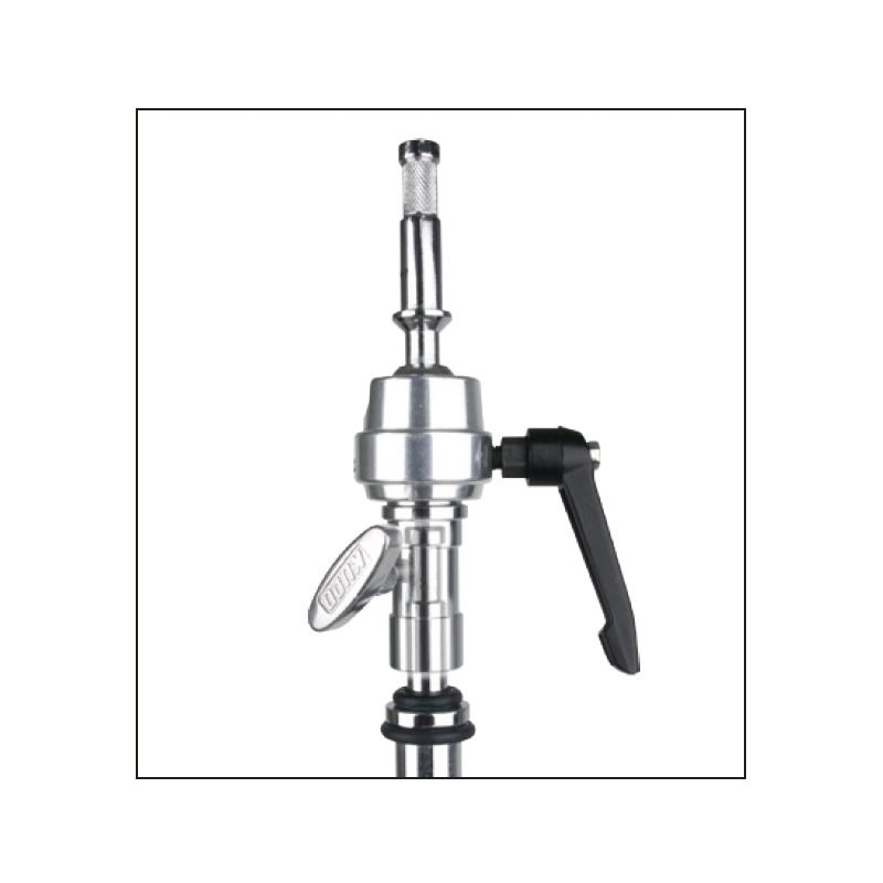 Kupo KCP-410 Grip, Designed to mount a lighting fixture or accessories onto the baby swivel pin and angle it in any direction. Unique ratcheting handle allows all axis lock positively with one locking handle. The 16mm socket (inside) and 28mm (outside) barrel also fit to junior receiver while removing the tightening knob.