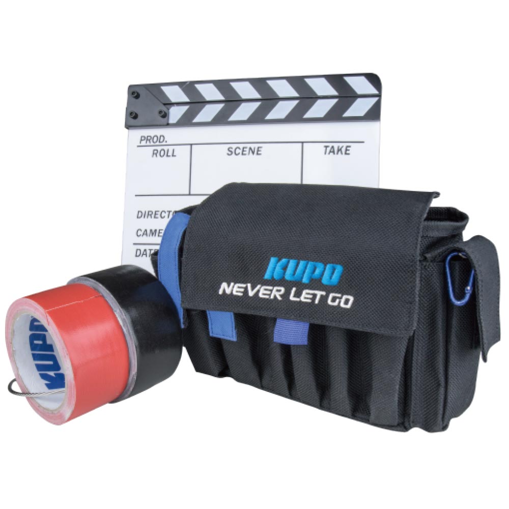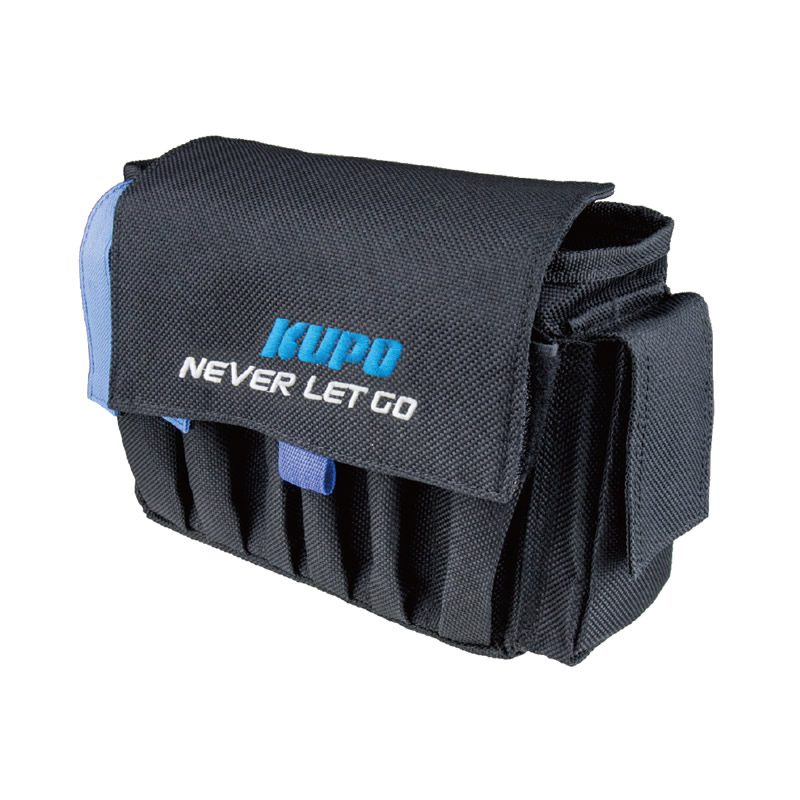 Designed primarily for camera assistants in the film Industry and suitable to anyone who need rapid access to various tools. The Kupo Utility AC bag is made by 1,000 Denier cordex textured nylon fabric with a water resistant polyurethane coating on the inside. Inside the main compartment is a separate pouch, as well as a Velcro see-through mesh pocket on the underside of the main flap which is ideal for storing media cards and other small items. The bag fits utility belts up to 2 inches in width allows you to take on and off the bag super easily. Exterior of the bad has 5 slip pockets ( two of them are with Velcro flap) can hold dry-erase markers, sharpies, pens, chalk,pencils ,hex keys, screw drivers, leatherman and Maglite for easy access. An ideal AC bag that keeps all your essential tools and accessories organized.