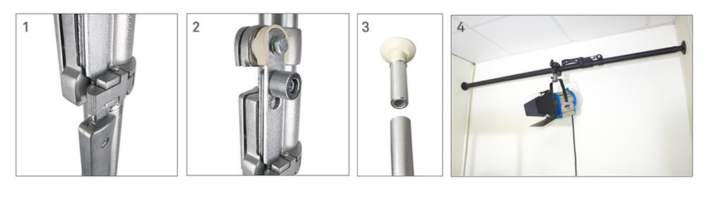 1. Safety lock / 2. Adjustable setting / 3. Spring cushion / 4. Horizontal for lighting