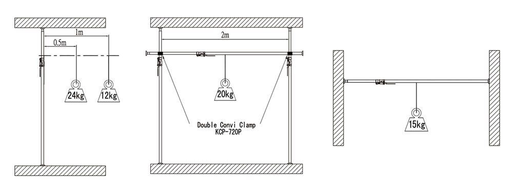 – Picture 1&2 are valid for using with rigid floor and ceilings, and with the rubber pad attached on the rubber cover.