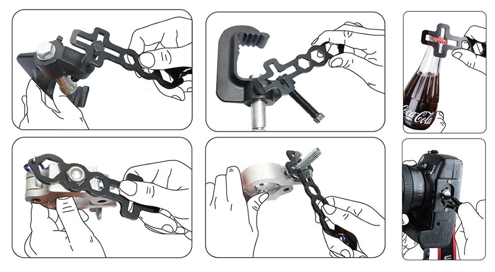 Constructed by carbon steel and engineered for rigging demand, this smart gadget offers you the maximum versatility with greatest durability. Fabricated for M8, M10 and M12 with cross holders for wingnut and setscrews and built to meet the most common needs in the professional rigging industry. Palm-size and extremely lightweight. Spring hook for attaching the tool to your belt makes this must-have multi spanner easy storage and transportation.